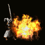 是火系魔法的最高境界,可以呼唤上古火之精灵,在瞬间爆发出高温火焰,以攻击目标为中心发出两条火焰斜线,最多可以同时攻击9个敌人。对快速移动的敌人非常很有效。